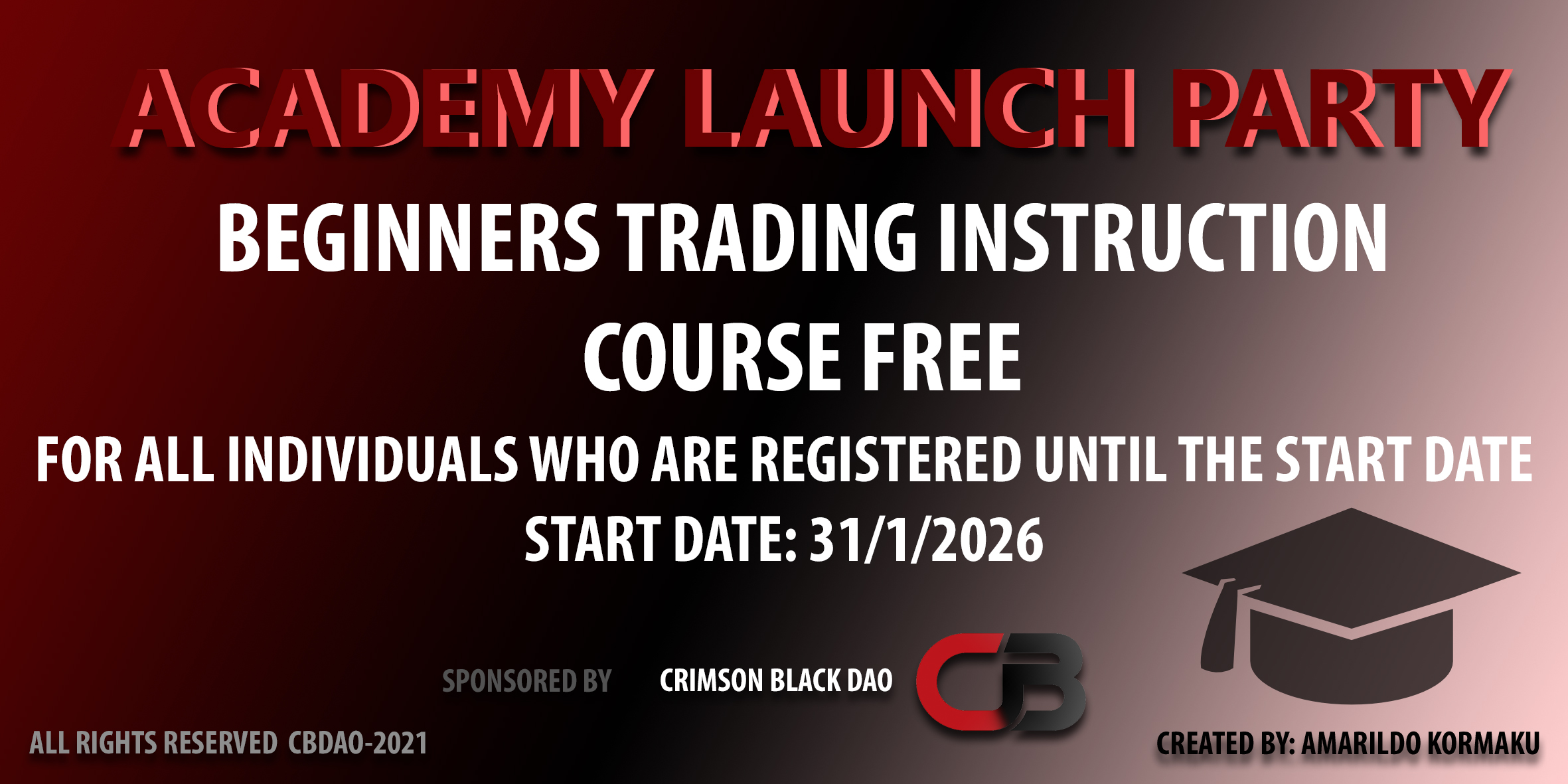 Free Beginner Trading Course for all the registered individuals who are registered until the start of classes in Crimson Black Academy.